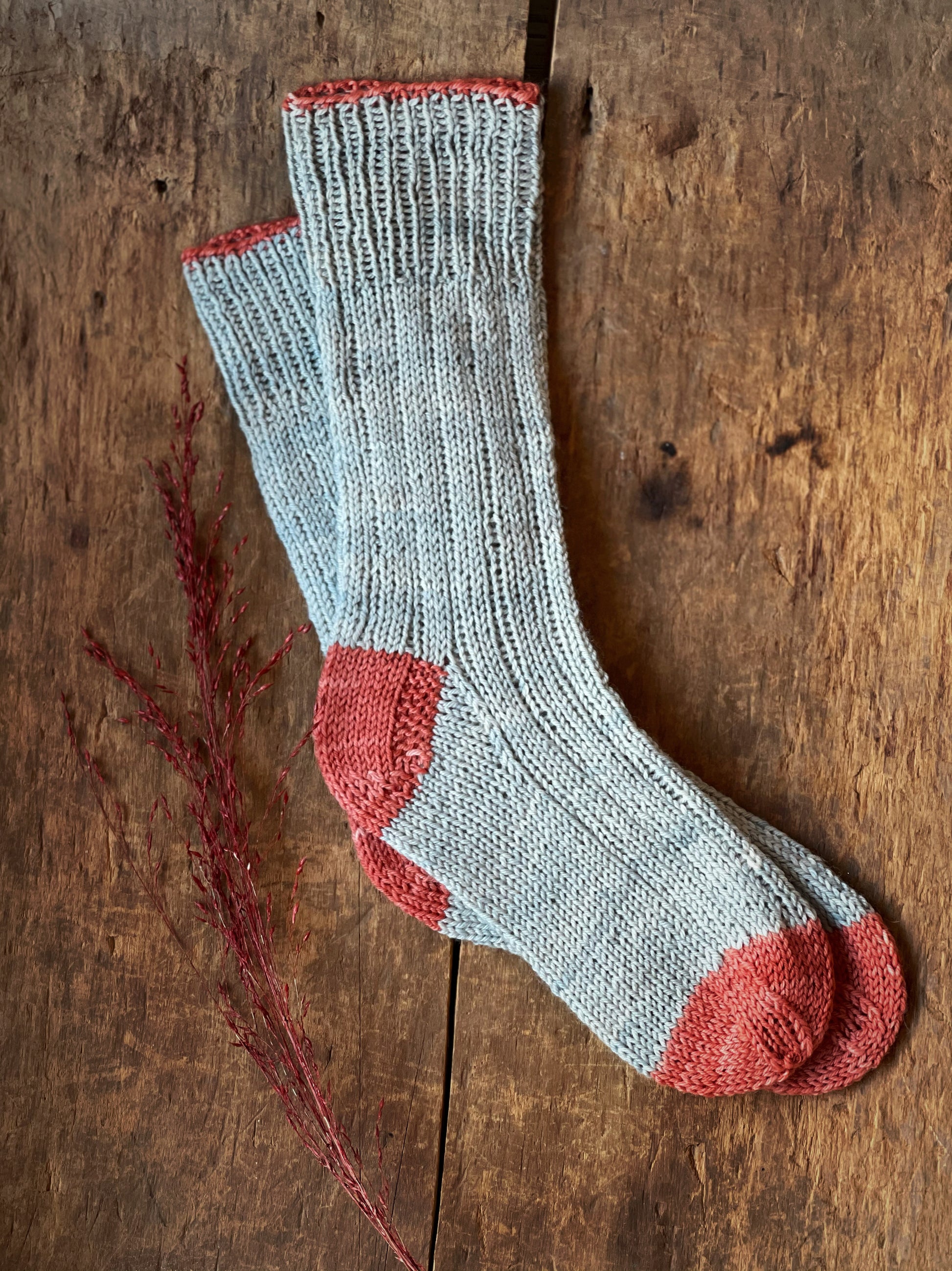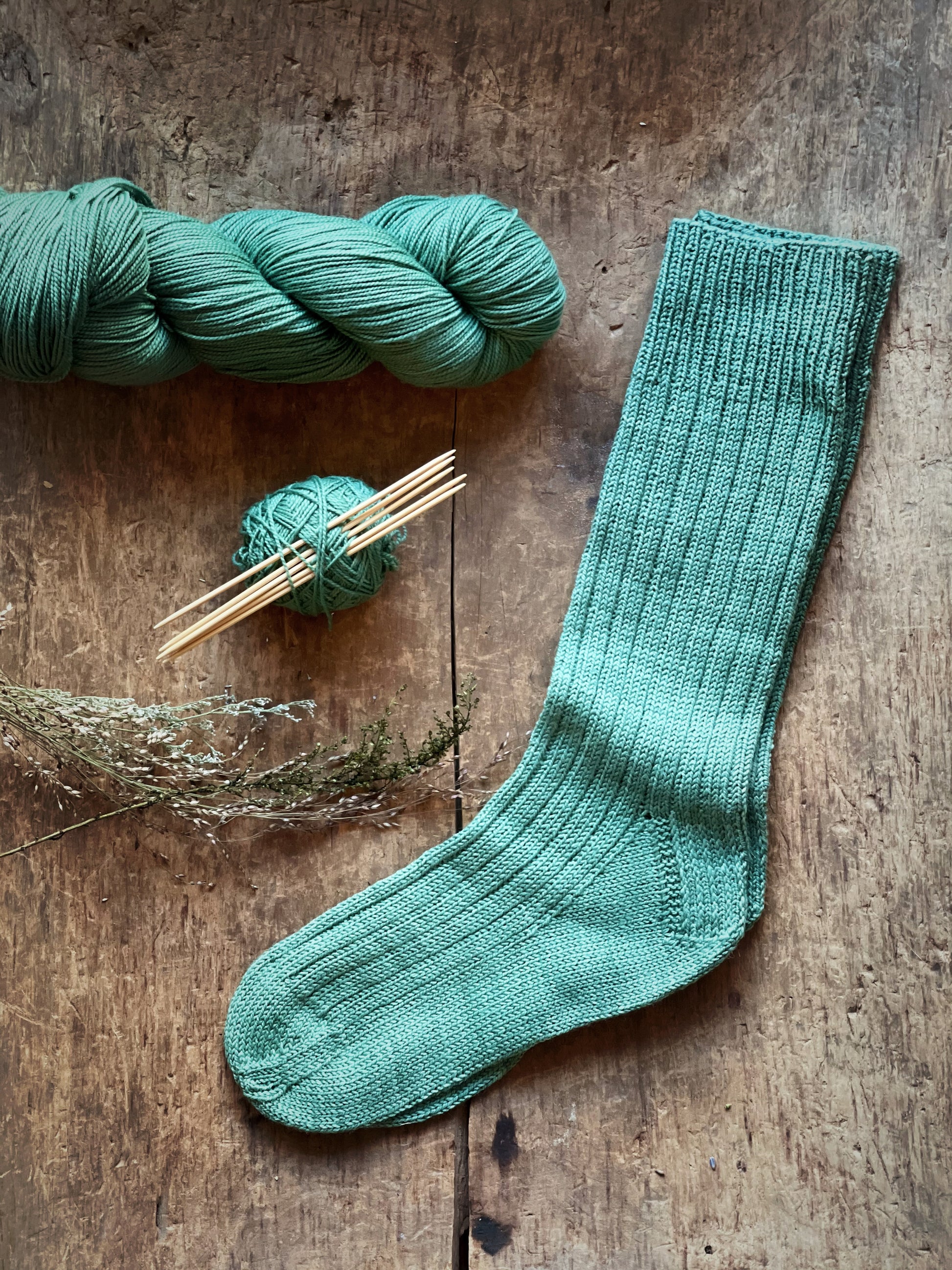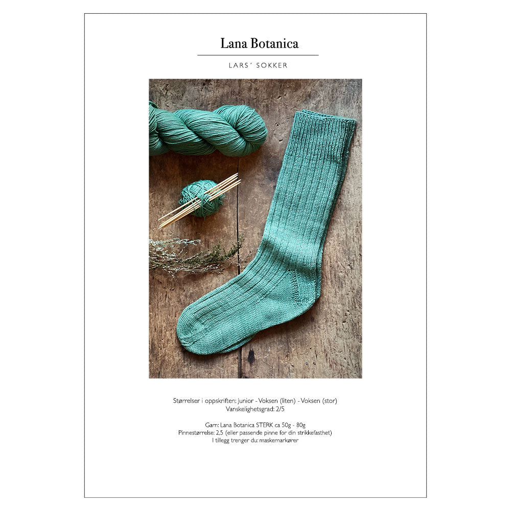 Denne oppskriften inneholder en sokkeoppskrift med ribbemønster. Oppskriften er i tre størrelser; junior, voksen (liten) og voksen (stor). Garn brukt på bildene er Lana Botanicas plantefargede sokkegarn STERK*. Det er brukt ca 40 g garn til junior-størrelsen, 60 g til voksen (liten) og 80 g garn til voksen (stor). Pinnestørrelse 2,5 eller den som passer deg. Oppskriften er et digital produkt,